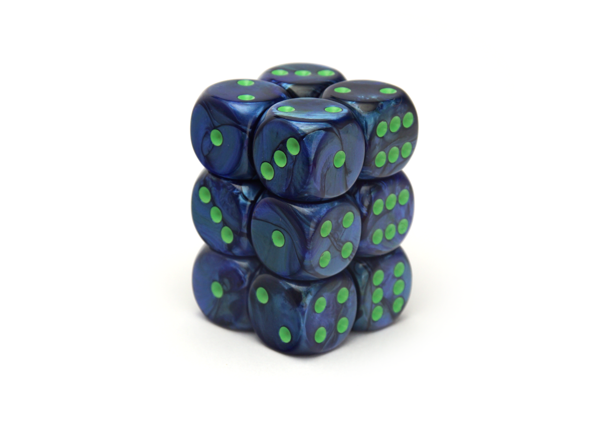 The Lustrous Dark Blue from Chessex has an oily marbled appearence, it's surface appearing to capture a swirling liquid in an instant.