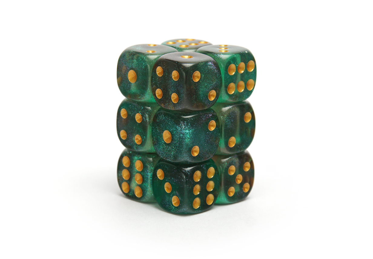 A glittering translucent block of chaotic greens, likened to the sought-after magical substance from the Warhammer universe. Finished with fine golden pips.