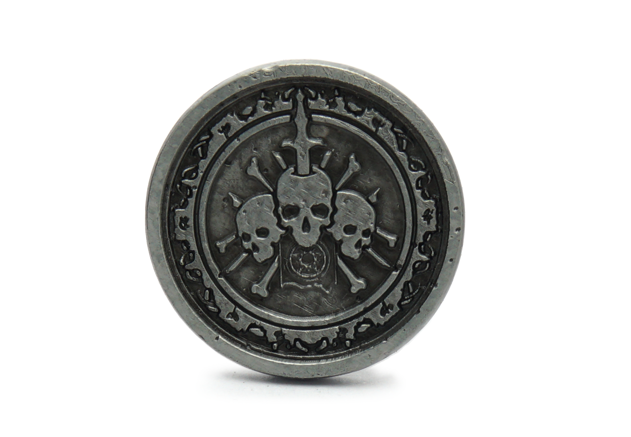 The casing of the book itself may also serve as an impressive dice tray, decorated with thematically morbid motifs and art!