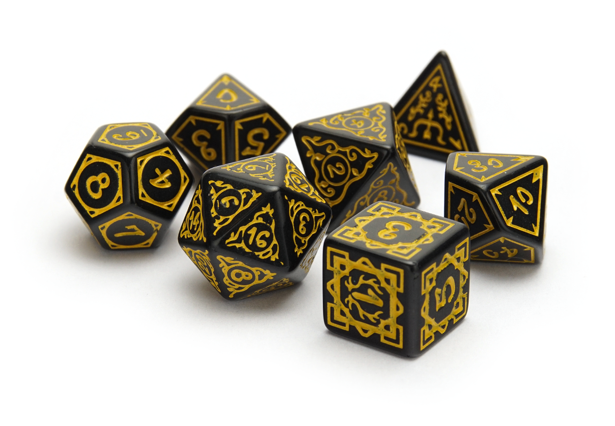 Wonderfully detailed in druidic carvings, the Druid's Circle dice are a perfect addition to a life in the wilds. Available in a variety of colours in order to suit your desires!