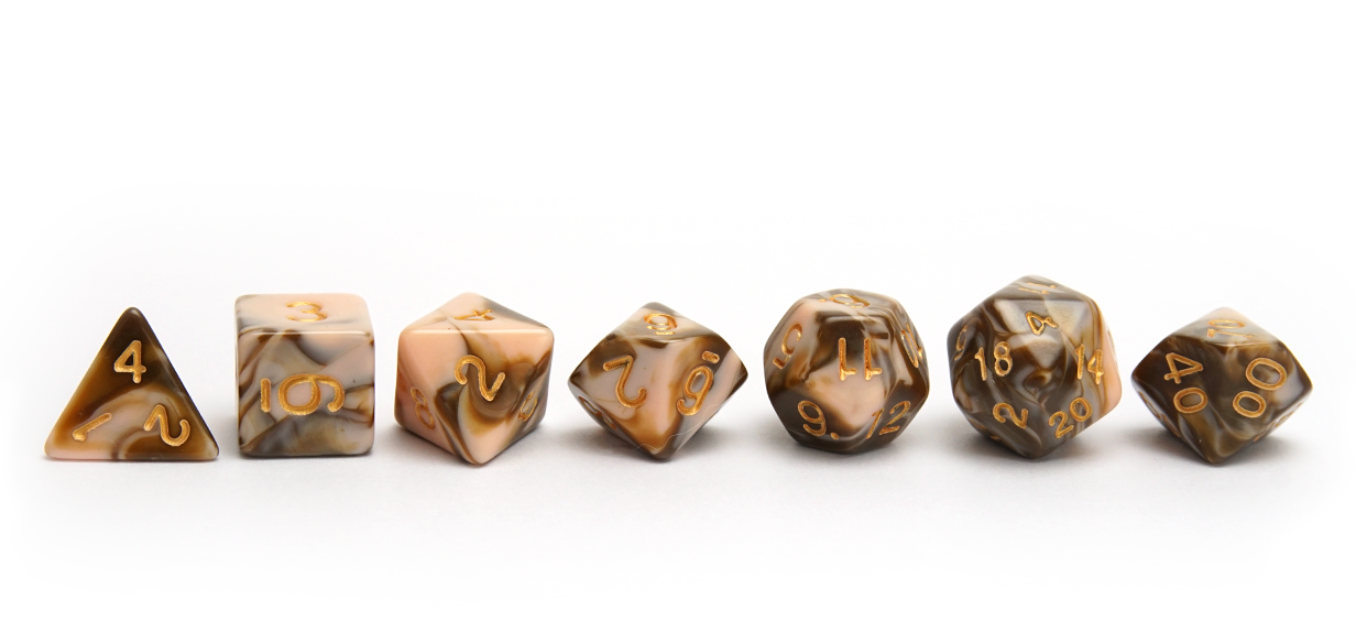 A smooth marble patterned mix of vibrant hues and creamy white give each one of these dice a unique look!