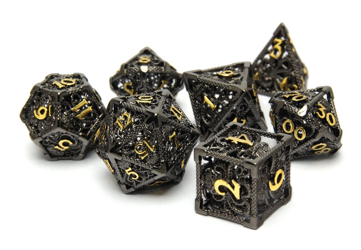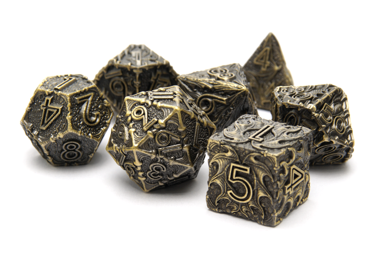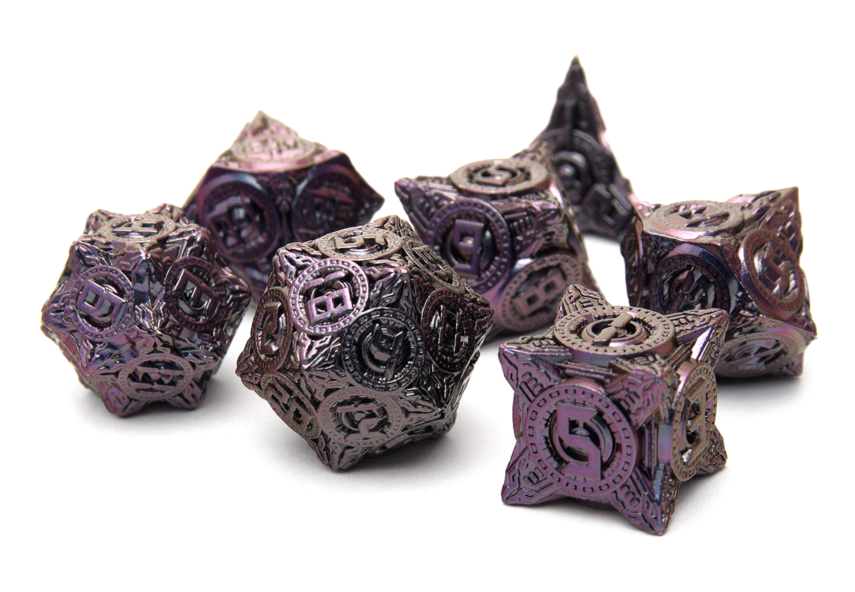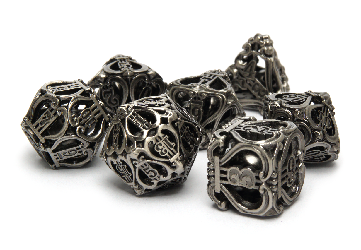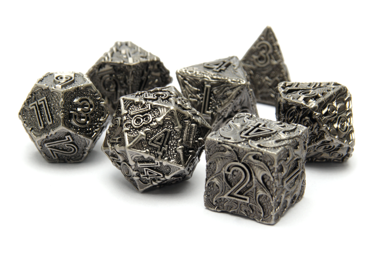 Some people enjoy lighter dice while others prefer the feel of power in their rolls. At DiceRoll UK we offer a growing selection of metal dice to suit all preferences and characters. Whether you’re a stealthy assassin wanting dice that leave an impression, or a cleric wanting their radiance to show, you’re sure to find a metal dice set to suit.