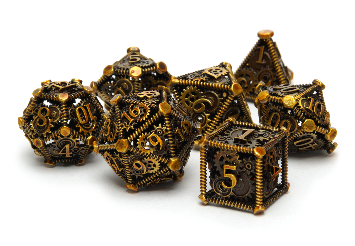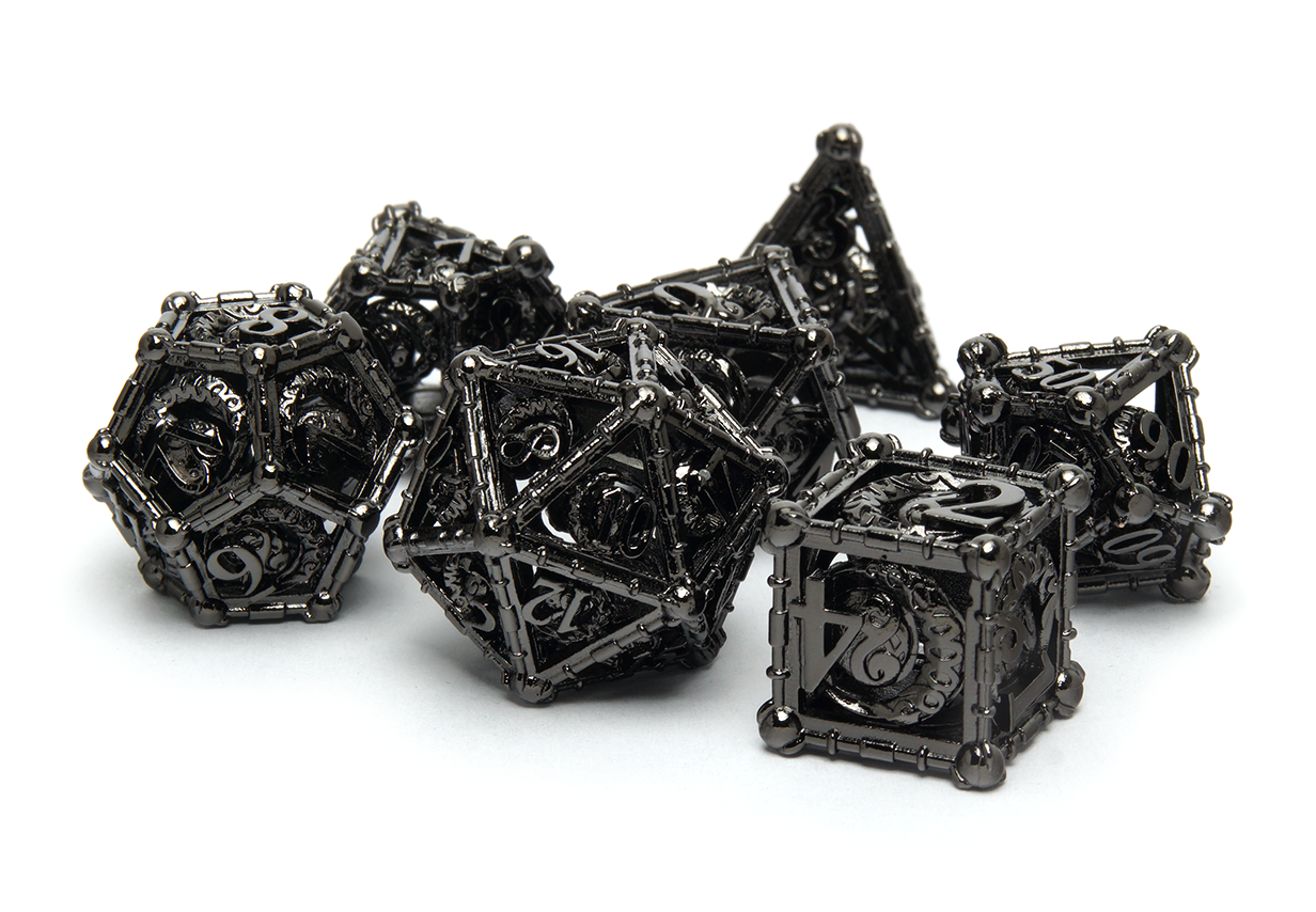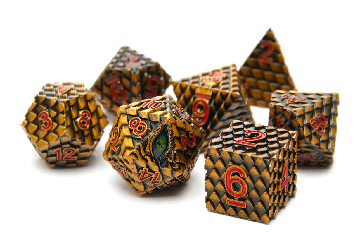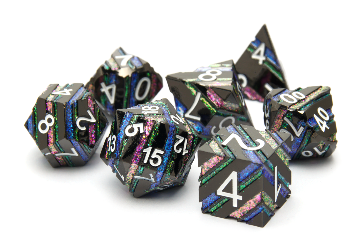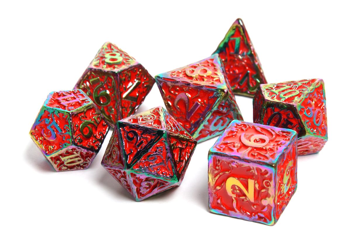 Some people enjoy lighter dice while others prefer the feel of power in their rolls. At DiceRoll UK we offer a growing selection of metal dice to suit all preferences and characters. Whether you’re a stealthy assassin wanting dice that leave an impression, or a cleric wanting their radiance to show, you’re sure to find a metal dice set to suit.