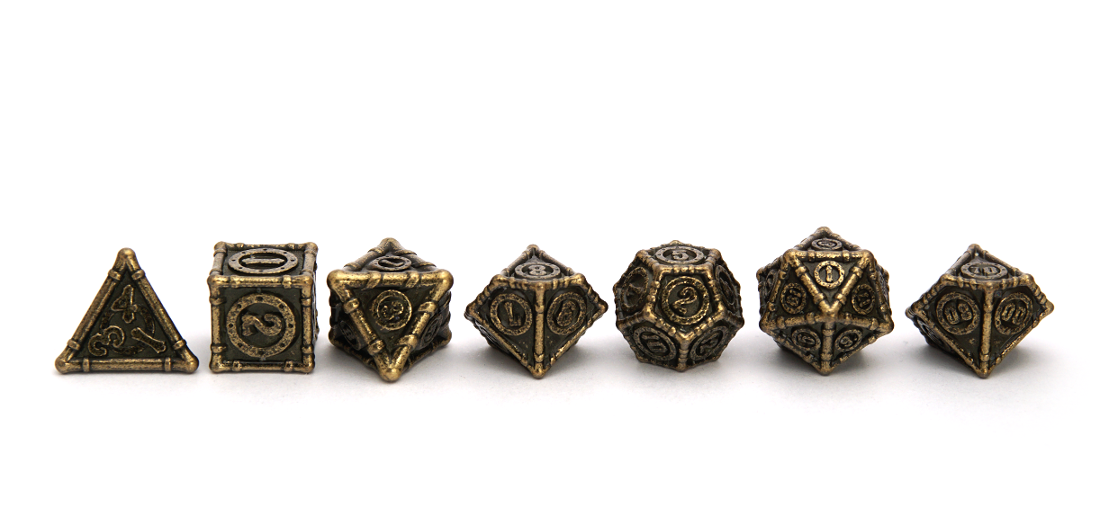 Heavy Duty metal dice with reinforced bulkhead faces complete with brass portholes and embossed numbering.