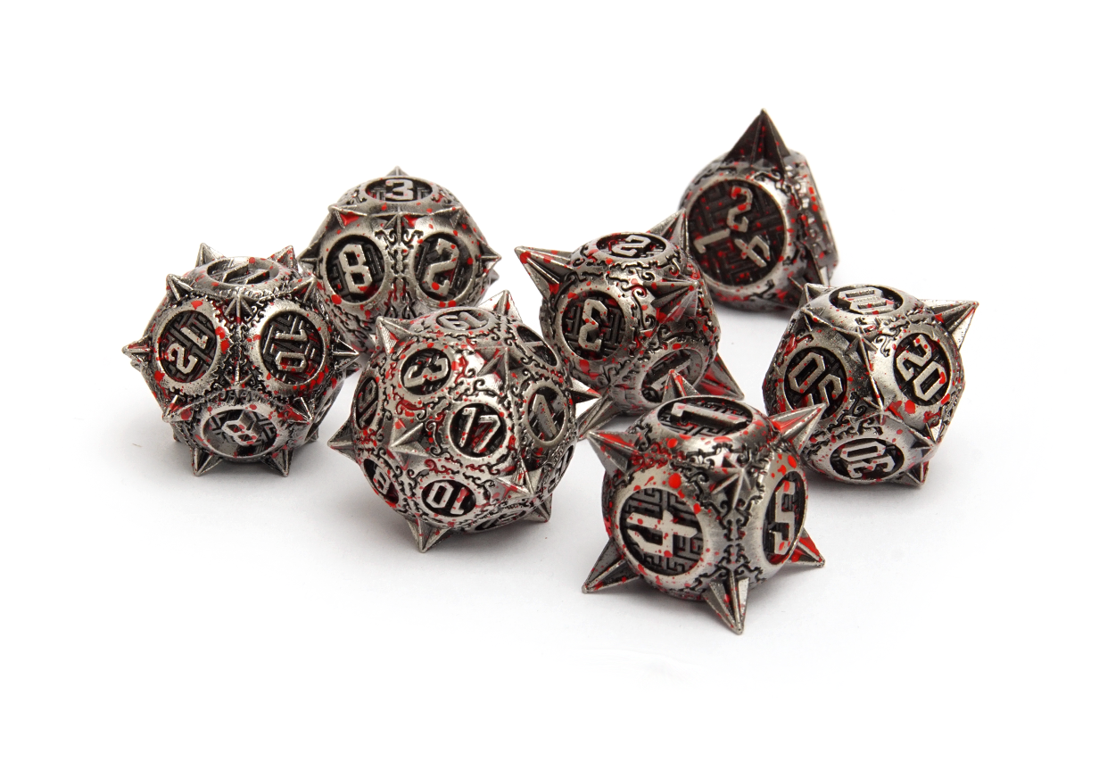 These magnificently detailed dice come armed and ready, sporting formiddable sharp bladed spikes on each corner that are not just for show. Seriously these guys hurt!