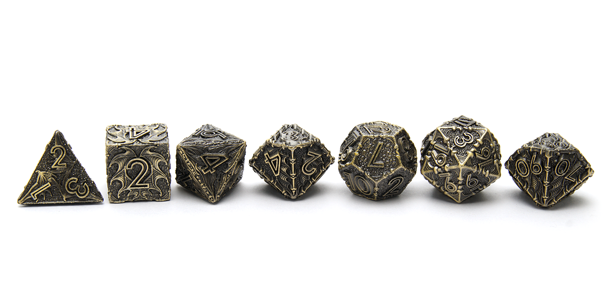 Ideal if you fight alongside or against dragonkind; these dice showcase an impressive design featuring wings, scales, and claws! Symbols or trophies? Either are sure to command the respect of a dragon!