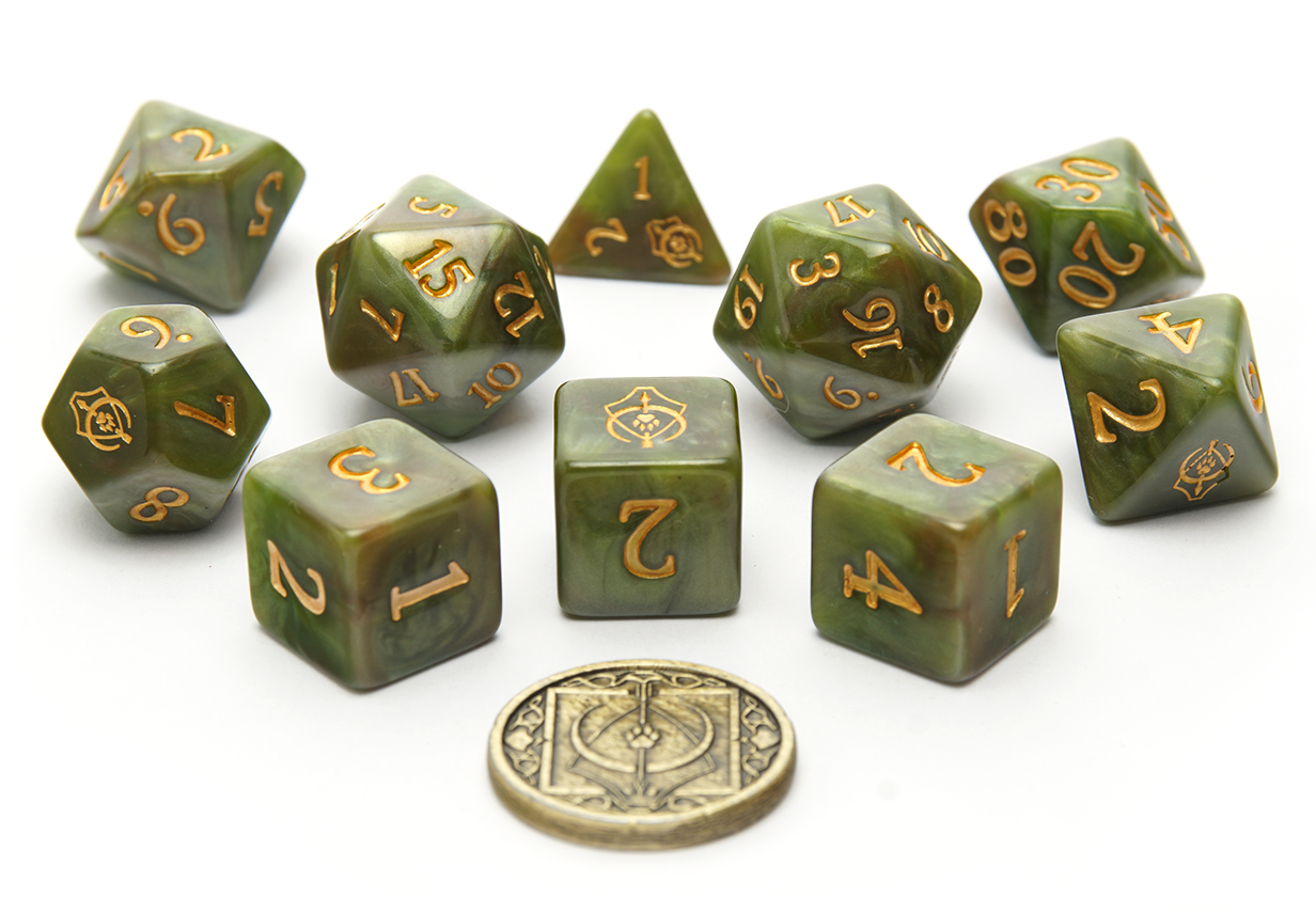 A druidic survivalist book containing the bare necessities needed to survive your adventure through the wilderness. Including an expanded polyset of 10 dice and a golden coin to curry favour when passing through those remote rural settlements.