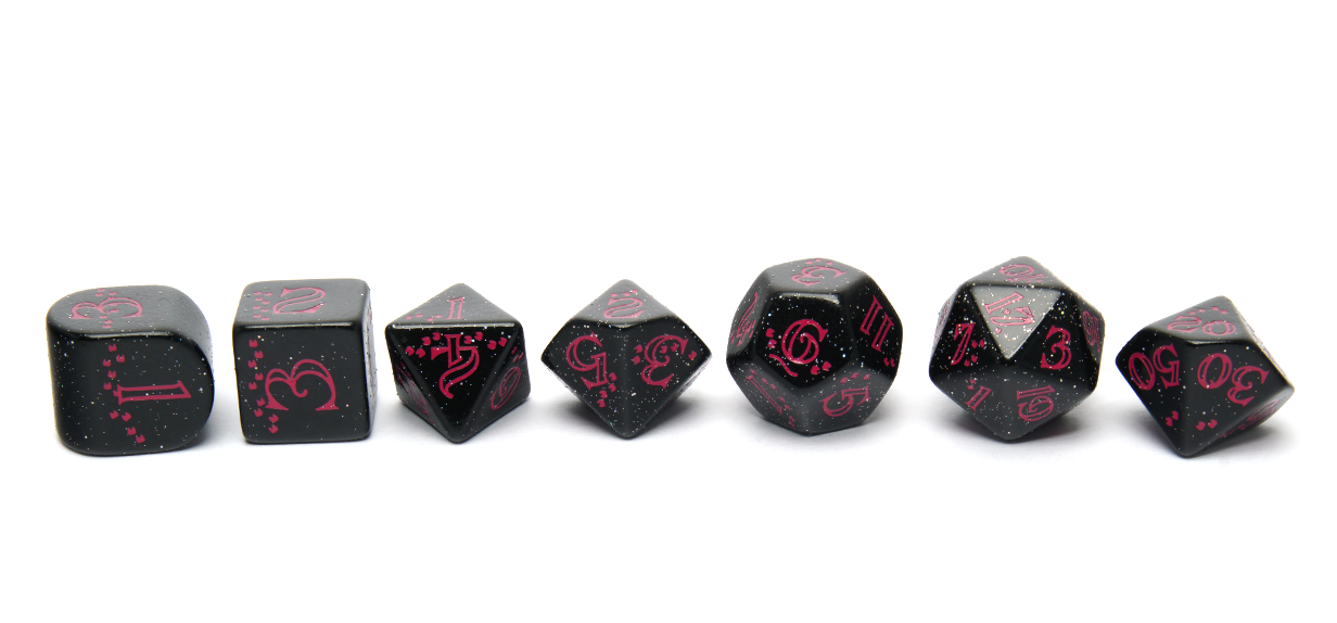 • Full Polyset: D4, D6, D8, D10, D12, D20, D%.
