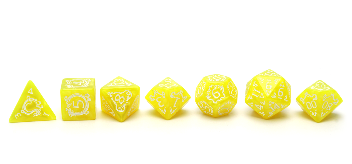 • Full Polyset: D4, D6, D8, D10, D12, D20, D%.