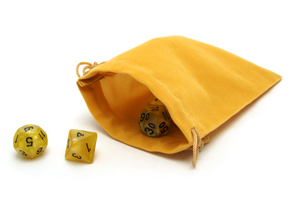 A simple soft fabric drawstring bag for safely storing or transporting your dice.
