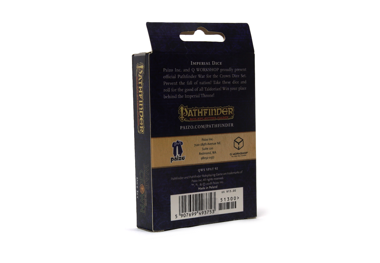 Paizo Inc. and Q WORKSHOP proudly present official Pathfinder War for the Crown Dice Set.