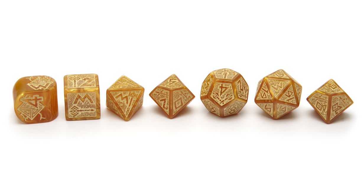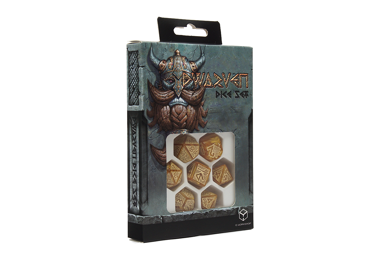 With their strong runic numerals accented with hammer and axe imagery, the Dwarven Dice Set from Q-Workshop is as important as a beard to any self-respecting dwarf!