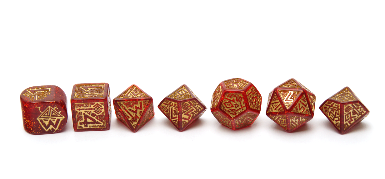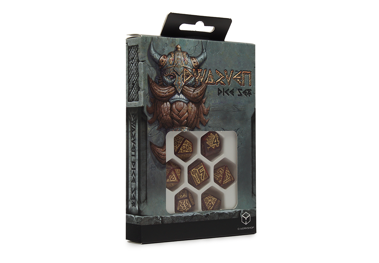 With their strong runic numerals accented with hammer and axe imagery, the Dwarven Dice Set from Q-Workshop is as important as a beard to any self-respecting dwarf!