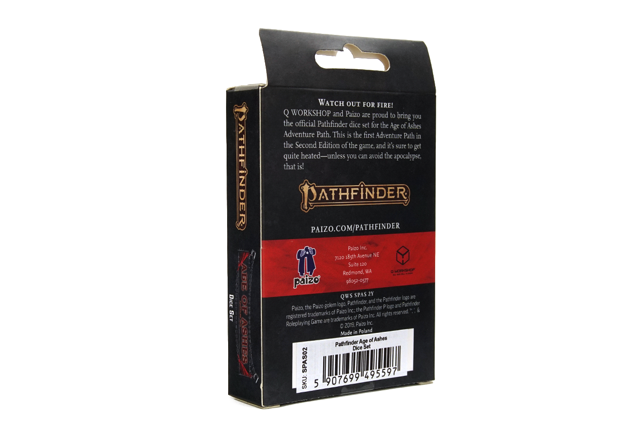 From Q Workshop and Paizo Inc. comes the devastating Age of Ashes Pathfinder RPG Dice set!