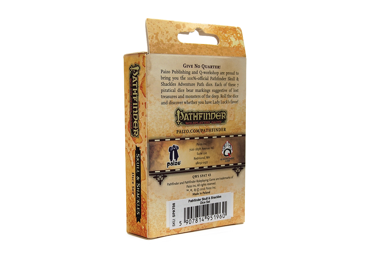 From Q Workshop and Paizo Inc. comes the perilously piratey Skull & Shackles Pathfinder RPG Dice set!