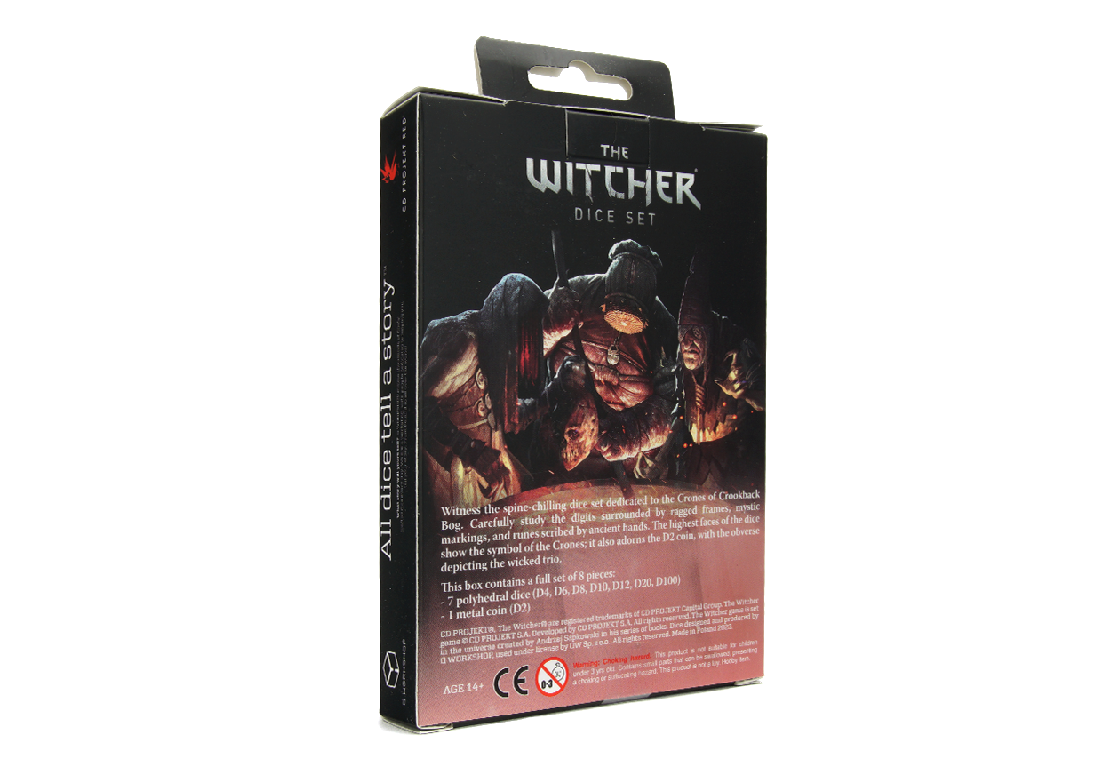 Polyset includes an official metal coin, imprinted with designs of the Crones themselves!