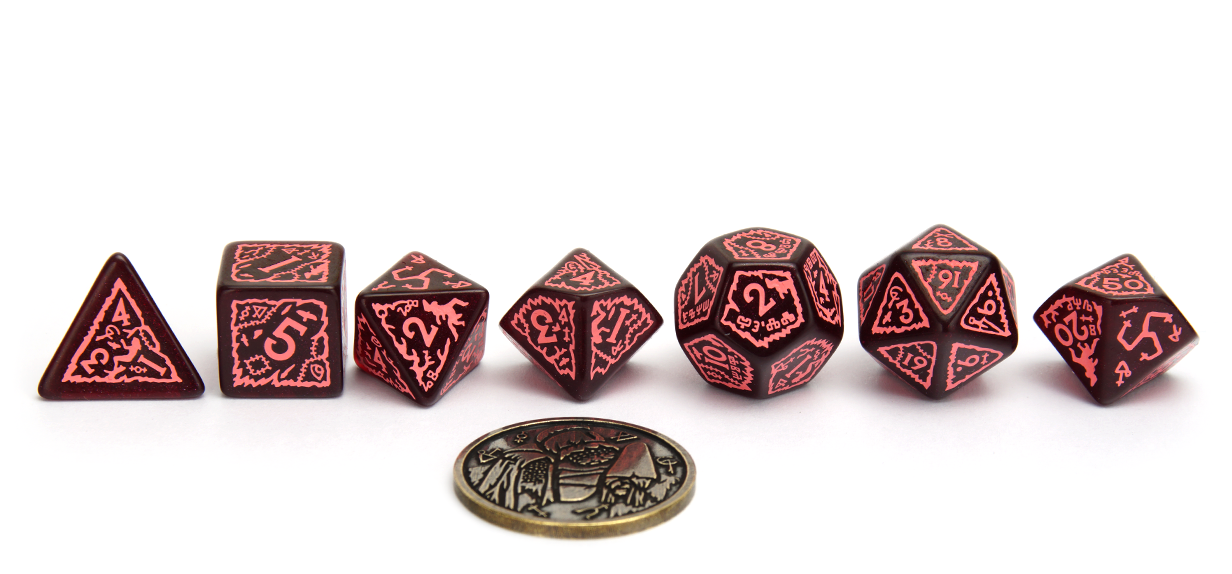 Polyset includes an official metal coin, imprinted with designs of the Crones themselves!