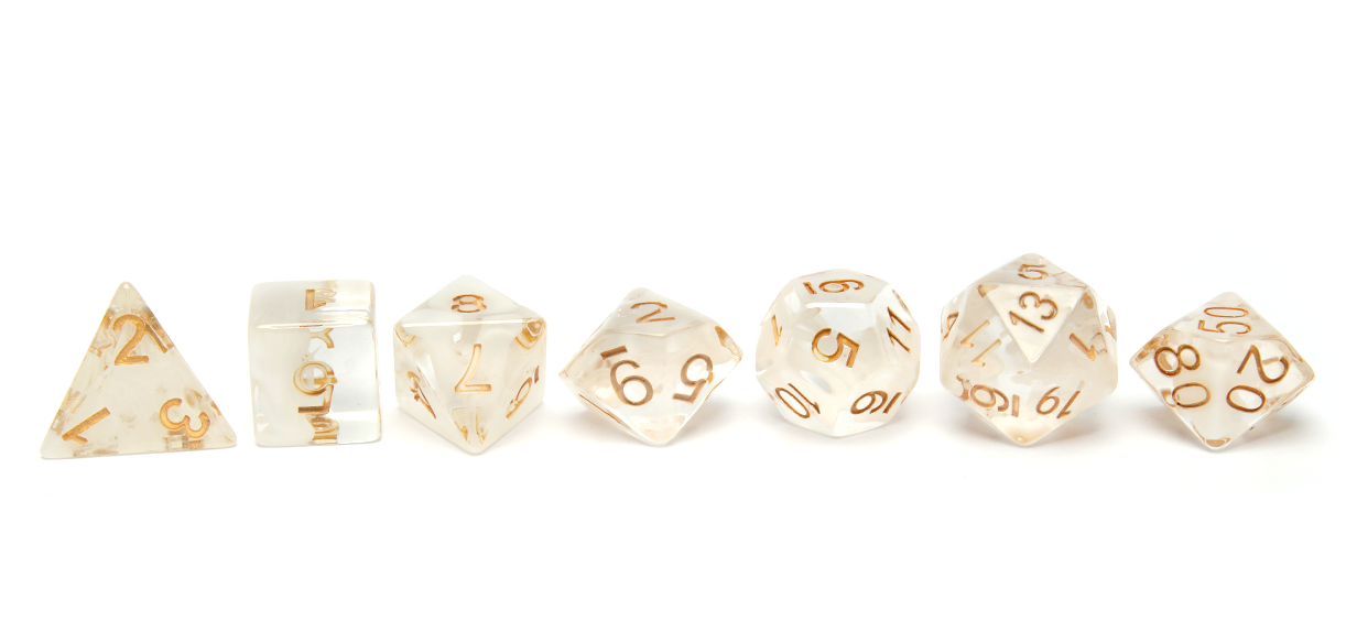 • Full Polyset: D4, D6, D8, D10, D12, D20, D%.