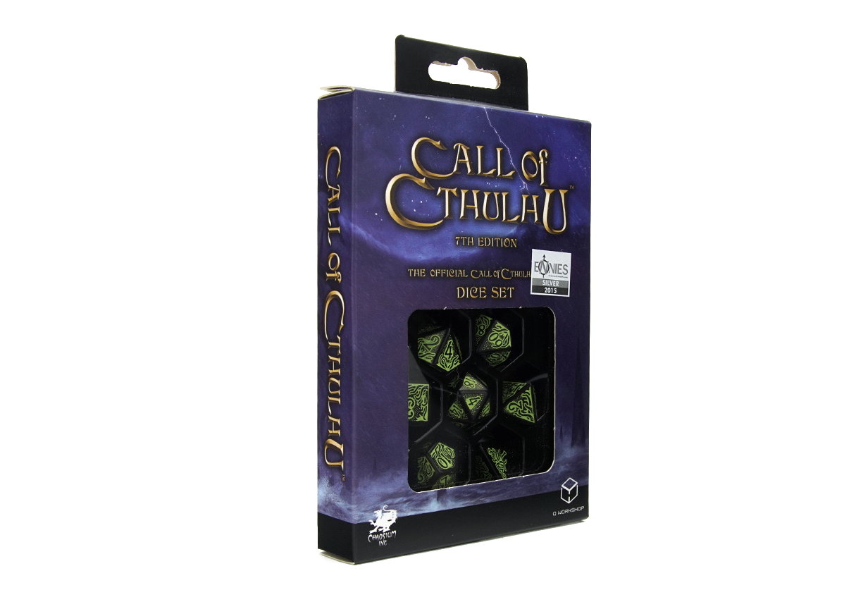 Q WORKSHOP created a set of seven dice for the seventh edition of the great game Call of Cthulhu from Chaosium.