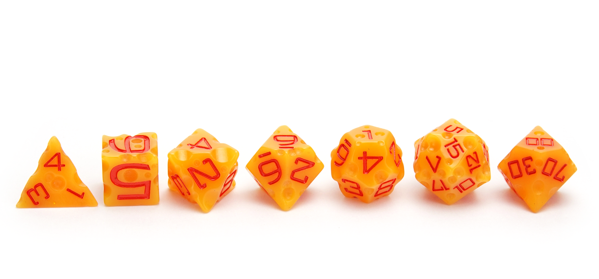 Yes that's right, dice that resemble swiss cheese! With real holes! An excellent gift for cheese-lovers everywhere.