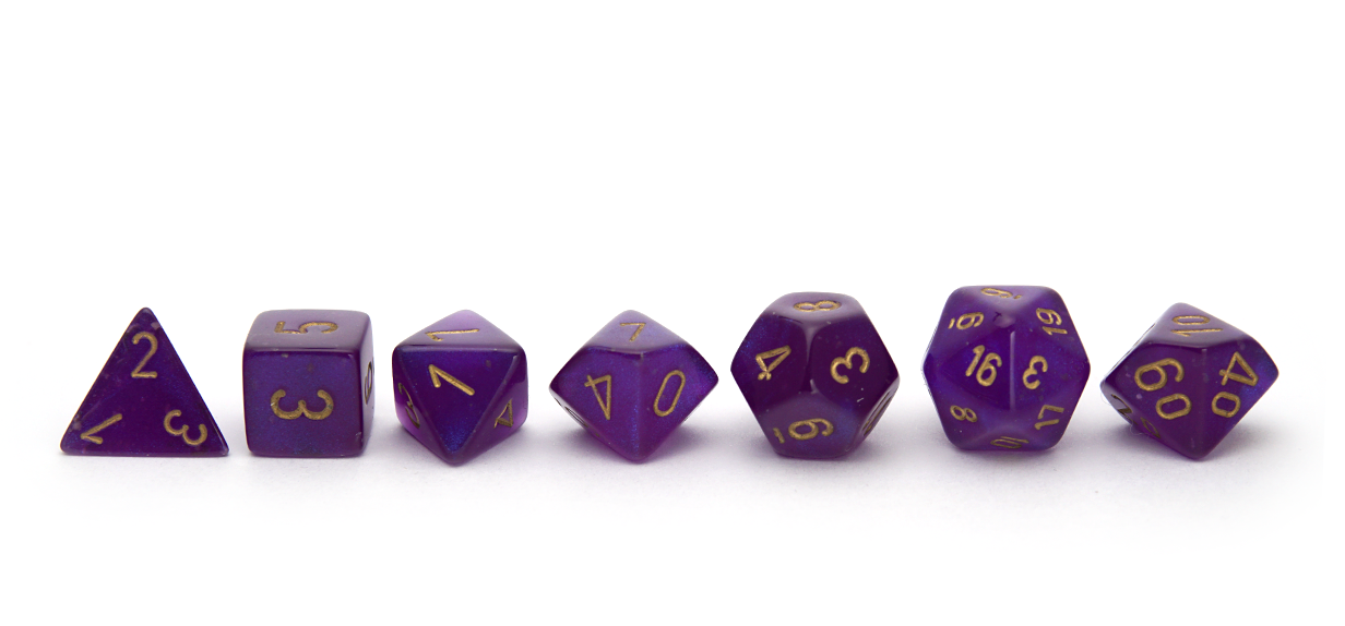 • Full Polyset: D4, D6, D8, D10, D12, D20, D%.