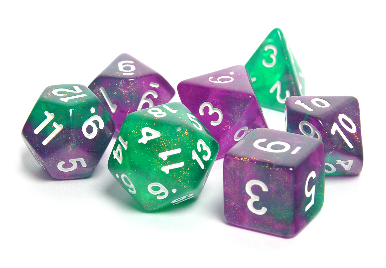 Beaming with the radioactive green and eerie violet purple of an otherworldly sky, and streaked with bright white inked numerals.