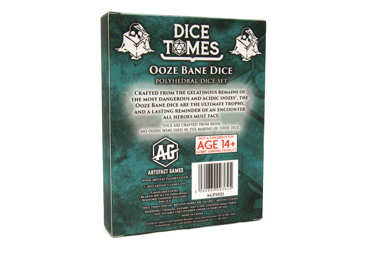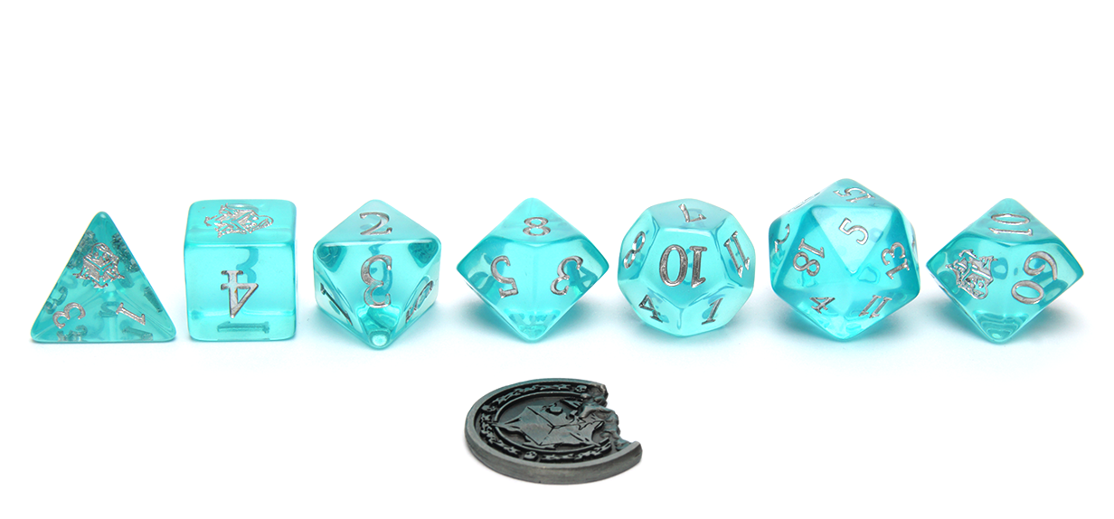 This oozing slime-themed polyset also comes with an acid-etched metal coin, a testament to your alleged victory (or narrow escape) against the legendary foe!