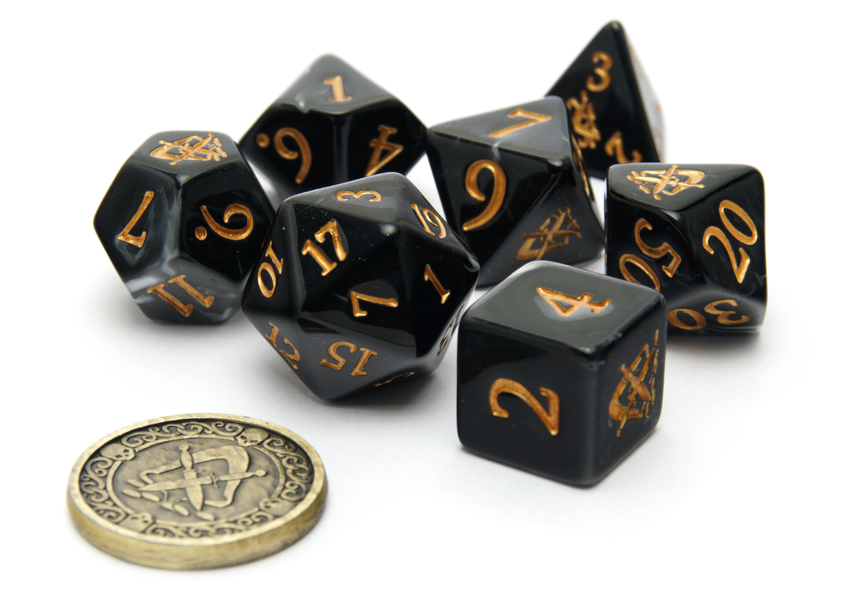Take advantage and strike from the shadows with this high quality Rogue Dice polyset from Artefact Games!
