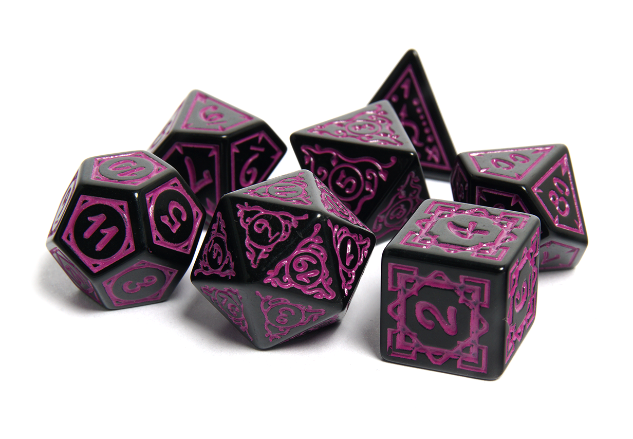 Wonderfully detailed in druidic carvings, the Druid's Circle dice are a perfect addition to a life in the wilds. Available in a variety of colours in order to suit your desires!