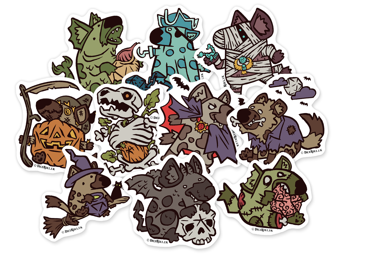 Get into the Halloween spirit with this pack of unique Halloween themed dice gnolls!
