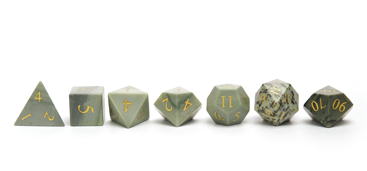 Unique in their appearance with their wild patterning, the Jasper dice make a perfect fit for any avid dice collector. The natural characteristics of Jasper ensures that these dice remain tough and durable.