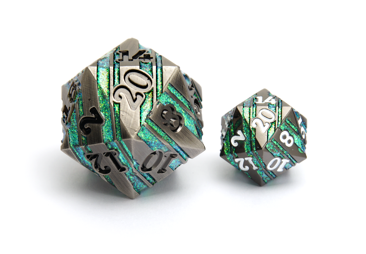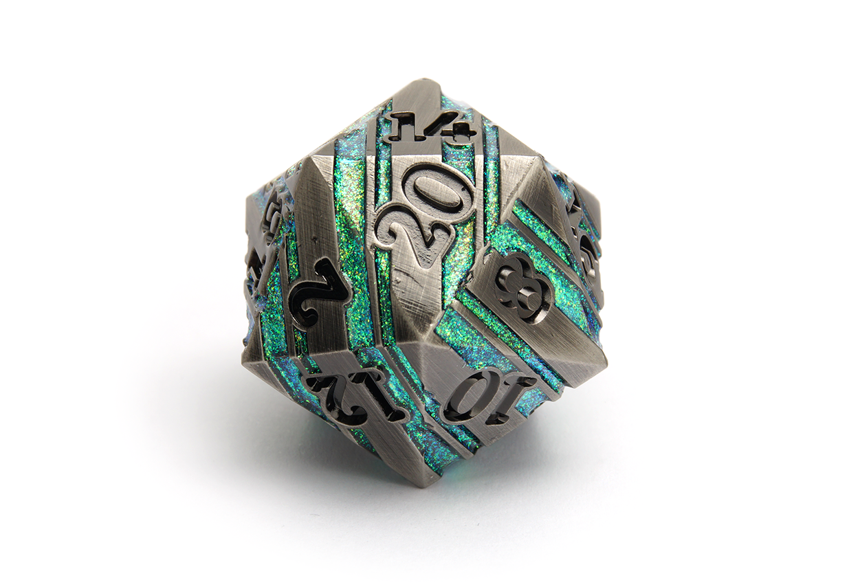 An enchanting icosahedral D20 dice from the Metal Ore Dice range... but scaled up massively!