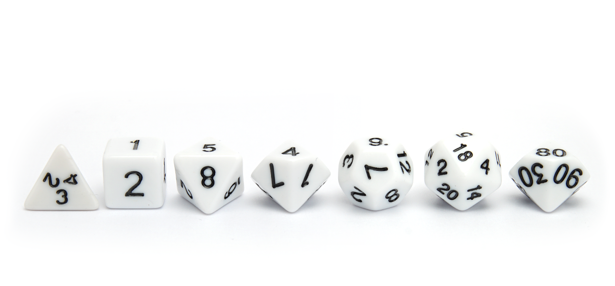 • Full Polyset: D4, D6, D8, D10, D12, D20, D%.